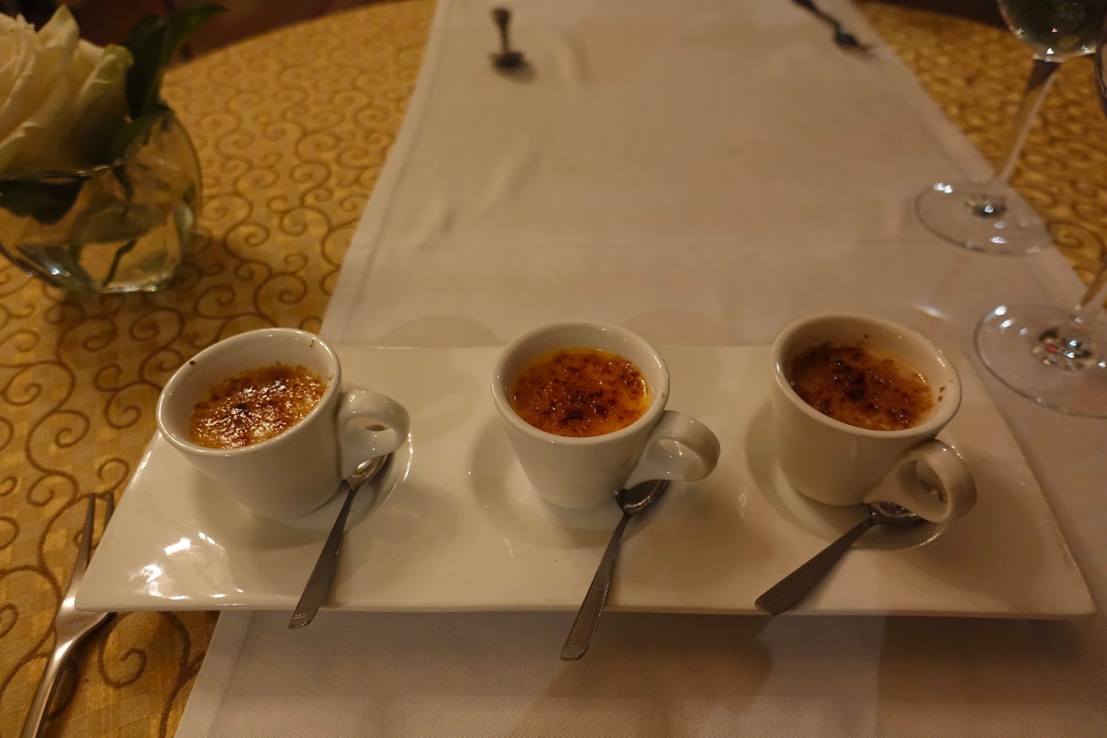 Finally, my husband and I shared an excellent creme brulee trio consisting of following flavors: vanilla, passion fruit and guava. And imagine, we had this dessert on both evenings because it was so good!