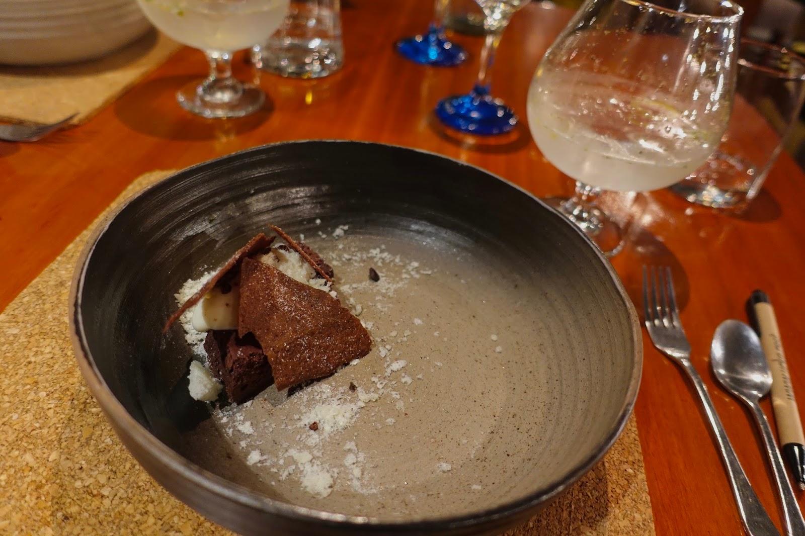 The ninth course was a perfect blend of cacao 90%, soursop (fruit) and salt, served with a chamomile gin tonic. It was an unbelievably tasty creation!
