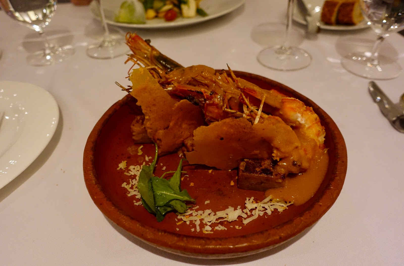 Out of the ten courses, here are three highlights. As first course, a combination of salad, shrimps and mussels was served together with a mint and sugar cane liquor. An astounding but harmonious get together!
