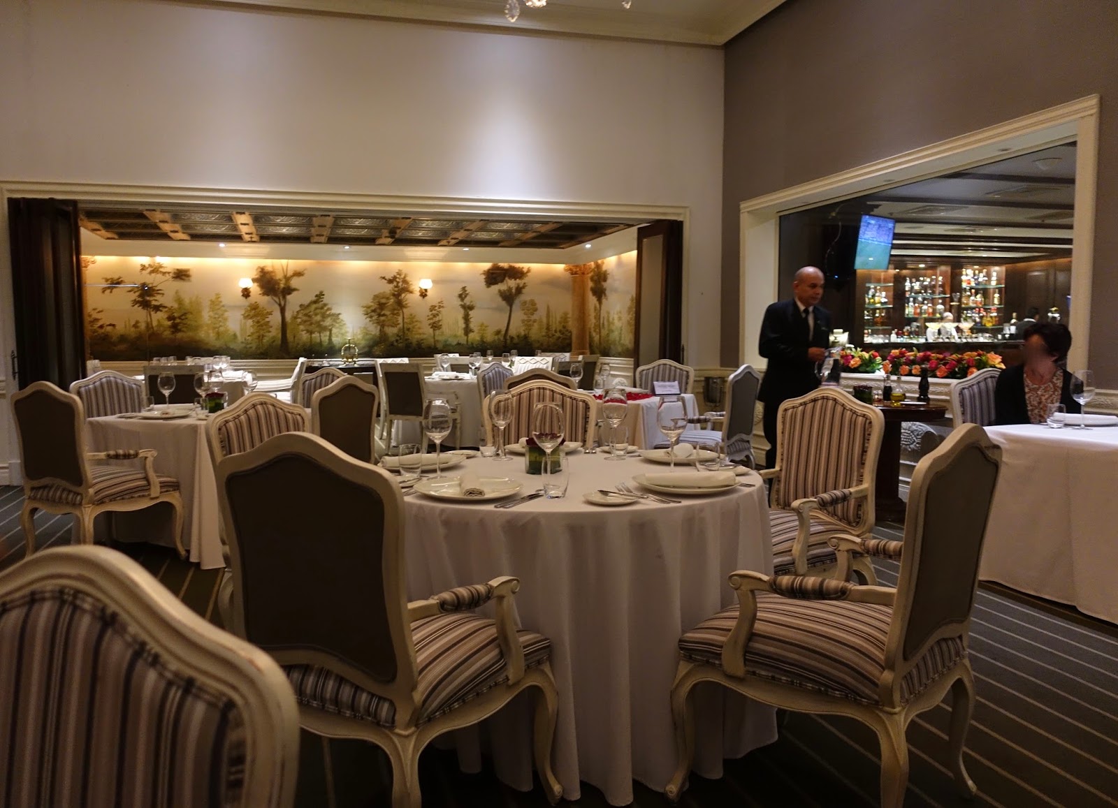 As the name suggests, it is a French restaurant, and it shows. There is an opulent dining room with chandeliers, large murals and a grand fire place. Also the service is typical French, formal, polite and with a certain reservedness. Having said this, the atmosphere is pleasant, without the stiffness inherent at similar places.